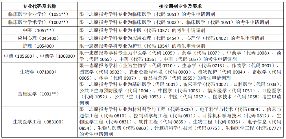 调剂考生第一志愿专业范围专业目录: